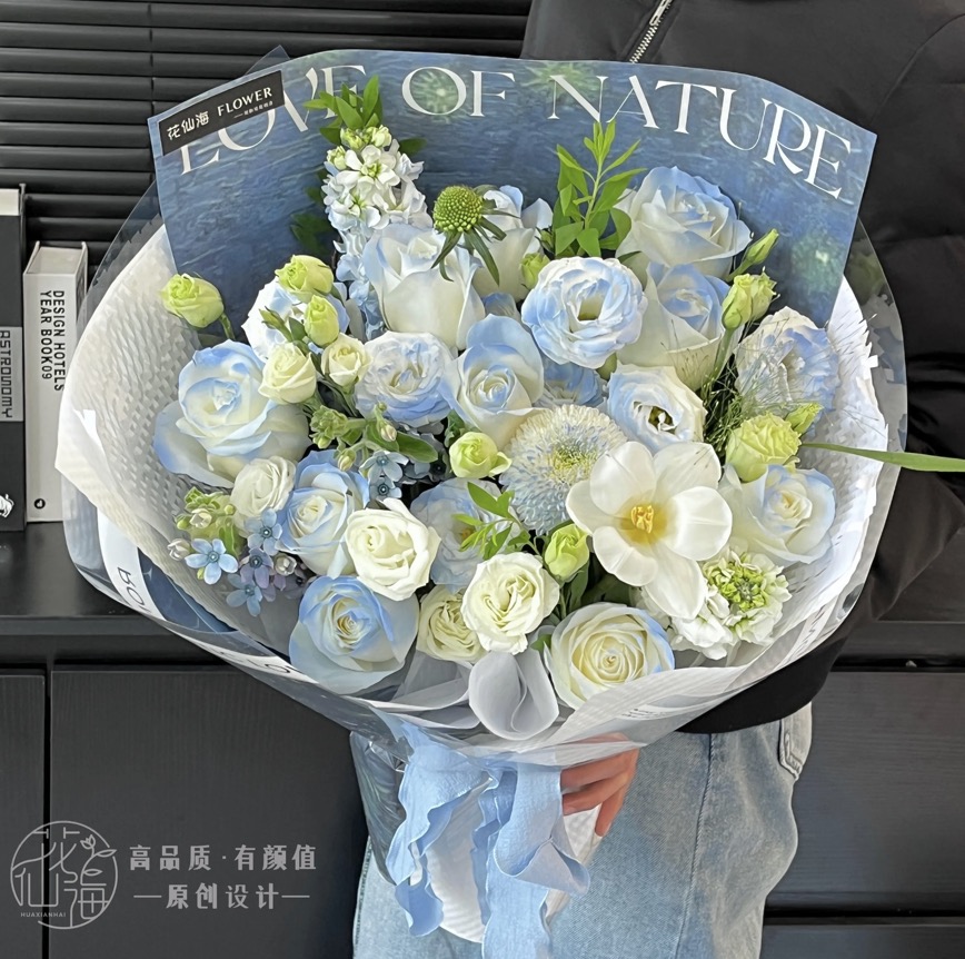 【冰岛之恋】碎冰蓝玫瑰郁金香桔梗乒乓菊混搭花束生日礼物送女友闺蜜送同事花店免费配送