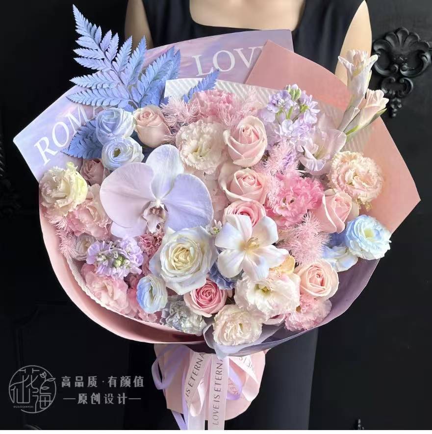【粉蓝绮梦】蝴蝶兰郁金香粉玫瑰紫罗兰混搭花束送女友老婆见面花束生日礼物花店免费配送