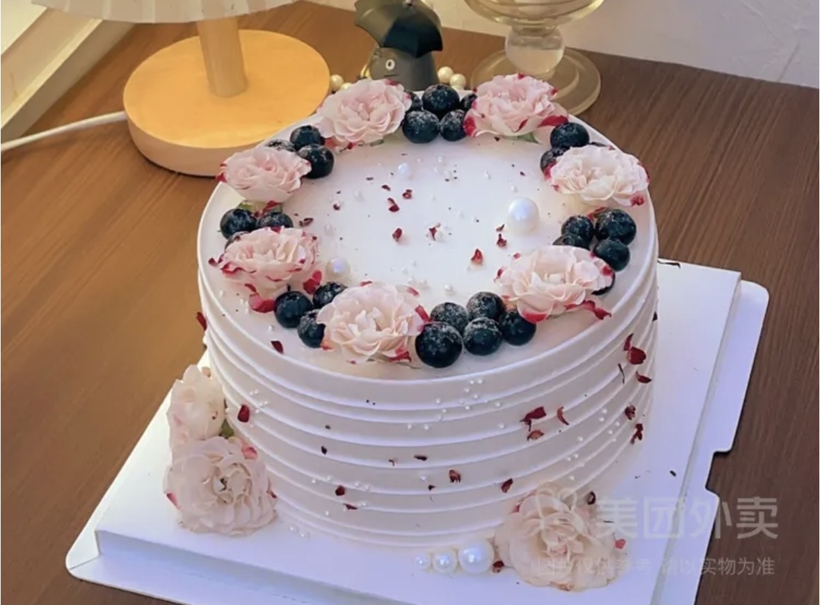 粉红折射泡泡蓝莓简约款生日蛋糕